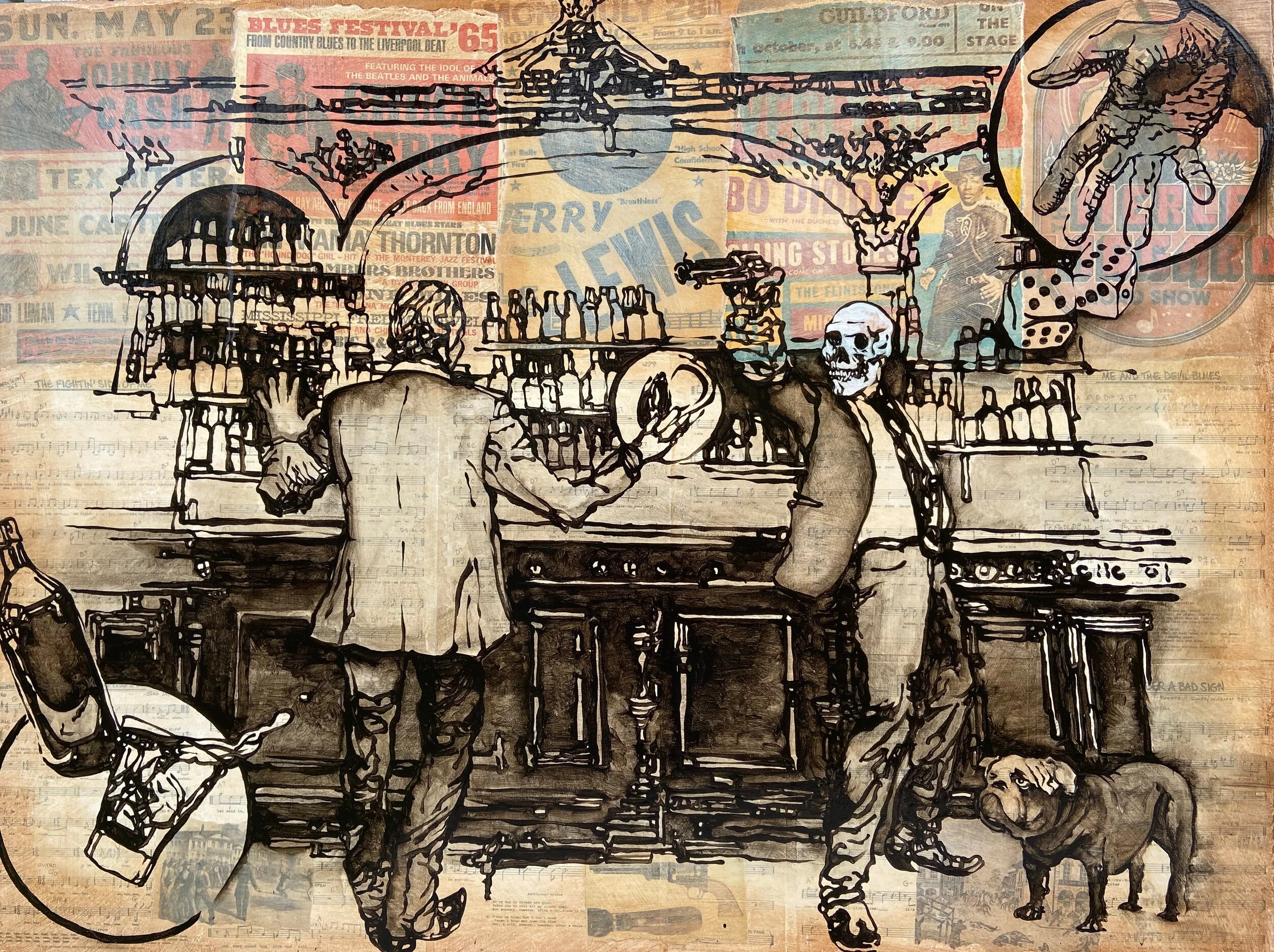 Will’s work is the soundtrack to a road trip; songs and artists are embedded on the towns they made famous. Bo Diddley, Johnny Cash and Deke Dickerson are as much as an influence as Frank Miller and Heinrich Kley. The lines of the road have become indistinguishable from the lines of the pen; just as the subject from location.