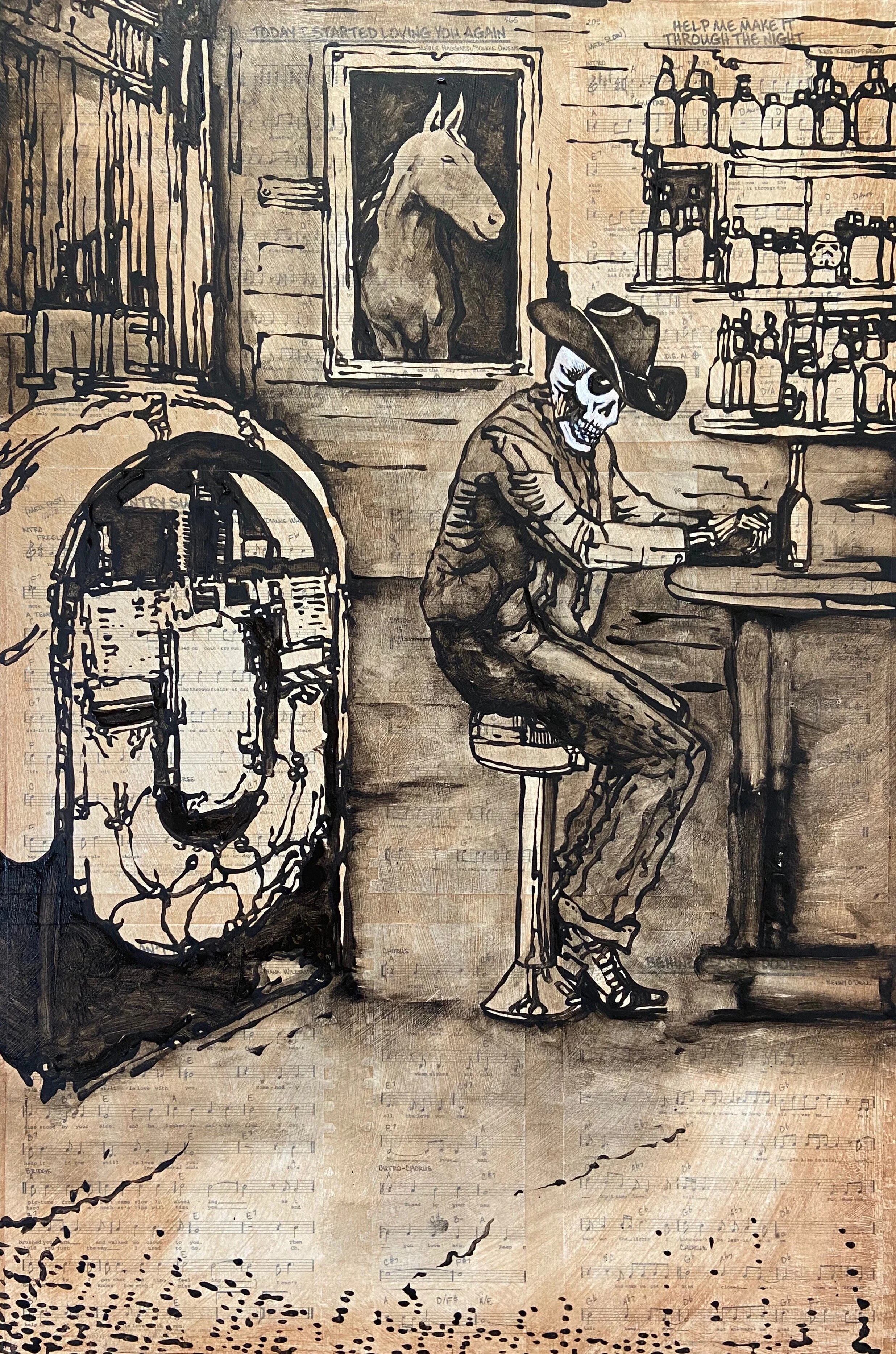 Tales of out of the way honky-tonks, movie palaces, cheap motels and barrels of gas paid on questionable credit; stories of both roadside dives or majestic theaters and the musicians that crawl in and out. The real show sometimes taking place on the street. Where does music come from? Where does it go to be heard? Sometimes the artist takes a fragment of a lyric out of context and tells a new story to change or re-emphasize the meaning.